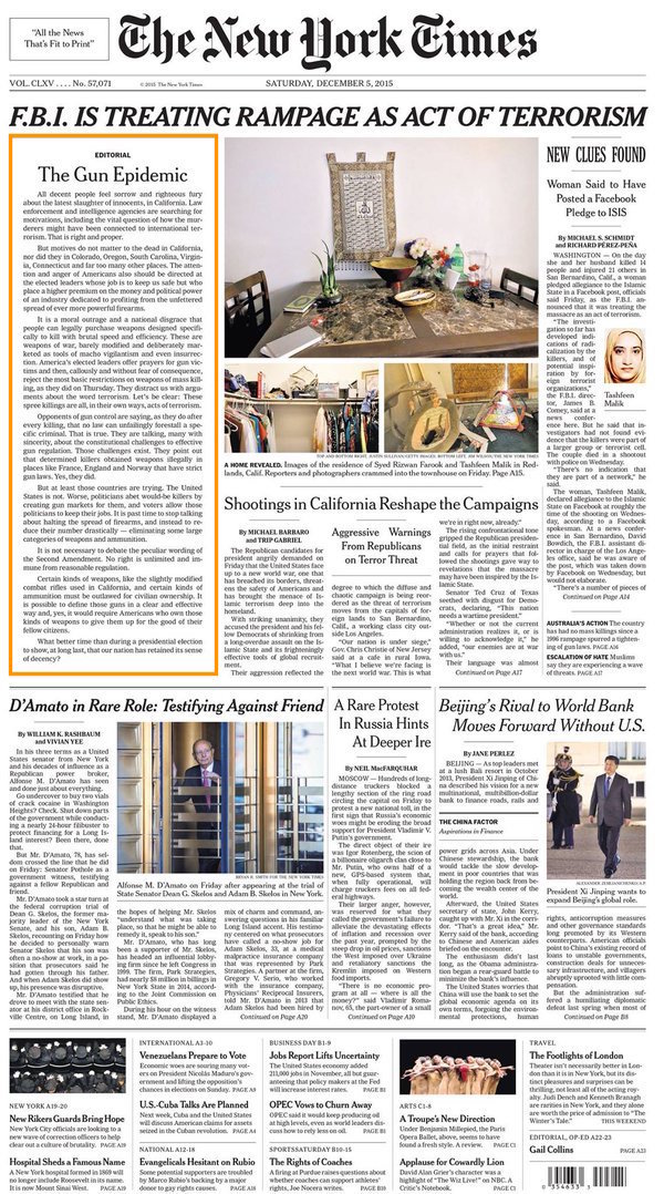 美國時(shí)間 12 月 5 日,世界上影響力最大的報(bào)紙《紐約時(shí)報(bào)》在頭版頭條刊登了一篇社論。這篇社論題為“結(jié)束美國槍支瘟疫”(End the Gun Epidemic in America),也是該報(bào)自 1920 年抨擊共和黨議員沃倫·G·哈丁之后...
