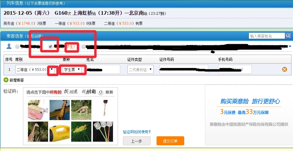 如果你是學(xué)生,就仔細(xì)把這幾項也如實填寫了就可以,注意,只填帶※好的就可以,不必多次一舉,區(qū)間填你上報學(xué)校的那個,一個城市有很多站,最好具體,比如南京有南京南站動車、南京站火車,坐火車就填南京站,你家在重慶的某個縣,你就可以填重慶北,如果不讓取票好好說一下就好。
